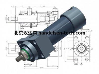 气缸采用螺纹设计制造,带有磨削和镀硬铬的活塞杆,用于下方